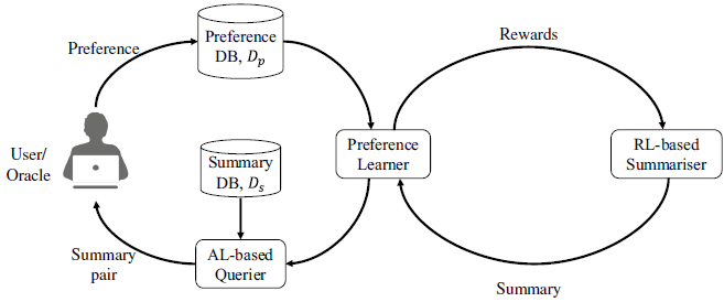 Abstract. Interactive NLP is a promising paradigm to close the gap between automatic NLP systems and the human upper bound. Preference-based interactive learning has been successfully applied, but the existing methods require several thousand interaction rounds even in simulations with perfect user feedback. In this paper, we study preference-based interactive summarisation. To reduce the number of interaction rounds, we propose the Active Preference-based ReInforcement Learning (APRIL) framework. APRIL uses Active Learning to query the user, Preference Learning to learn a summary ranking function from the preferences, and neural Reinforcement Learning to efficiently search for the (near-)optimal summary. Our results show that users can easily provide reliable preferences over summaries and that APRIL outperforms the state-of-the-art preference-based interactive method in both simulation and real-user experiments.